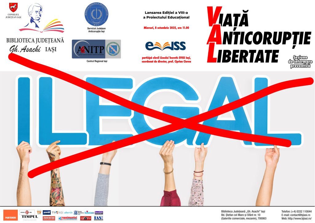 Un proiect educaţional – informațional – preventiv ajuns la ediția a VIII-a la inițiativa Bibliotecii Judeţene „Gh. Asachi” Iaşi împreună cu partenerii săi de specialitate: Direcția Generală Anticorupție (D.G.A.)–Serviciul Județean Anticorupție Iași și Agenţia Naţională Împotriva Traficului de Persoane (A.N.I.T.P.)-Centrul Regional Iași se numește: „INFO.BIBLIOTECA: VIAȚĂ – ANTICORUPȚIE – LIBERTATE” (VAL).