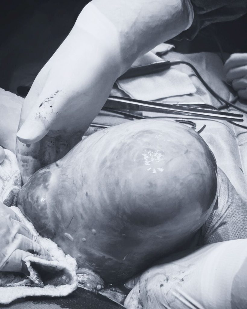 ”În ciuda importantei distensii abdominale și a fenomenelor evidente compresive asupra organelor învecinate, pacienta a evitat prezentarea la medicul specialist. După evaluarea de specialitate si diagnosticarea tumorii, decizia a fost certă: intervenția chirugicală.